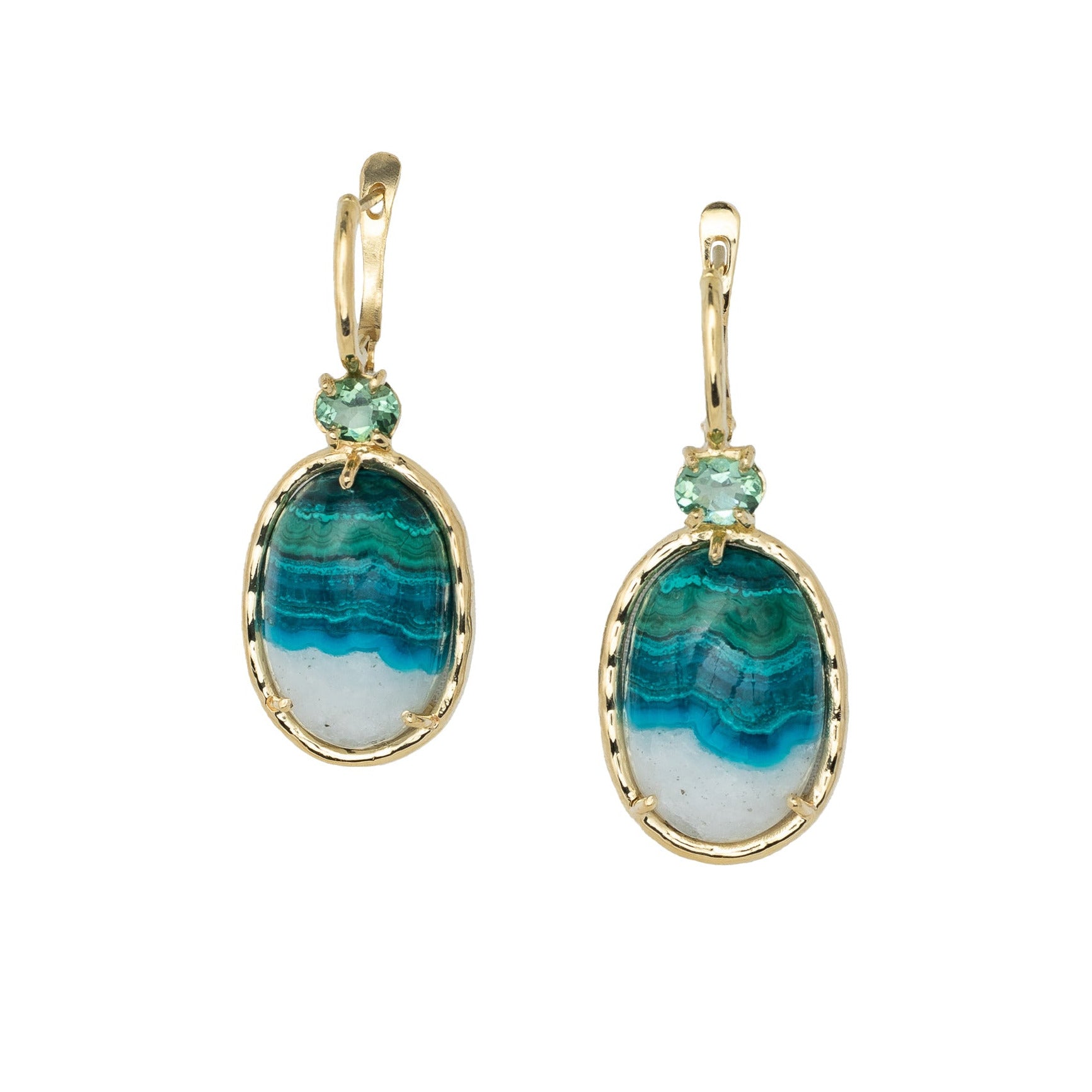 Seafoam tourmaline, chrysocolla-malachite-quartz, 18k yellow gold.